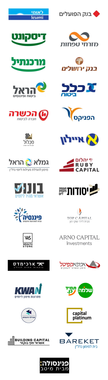 שי וצוות החברה עובדים באופן שוטף עם כל הגופים הפיננסיים בישראל, לרבות הבנקים, חברות הביטוח והקרנות המוסדיות והפרטיות, מעניקים יחס אישי ומסור, בהקפדה על עמידה בכללי הרגולציה הפיננסית והנחיות הבנקים בהתאמה לשינויים בשוק הנדל"ן, תוך שמירה על שקיפות ואמינות הן בעבודה עם הגוף המממן והן בעבודתם עם יזמי הנדל"ן.